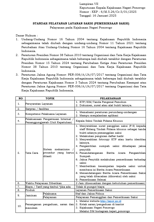 Pelayanan Layanan Saksi (Pemeriksaan Saksi)